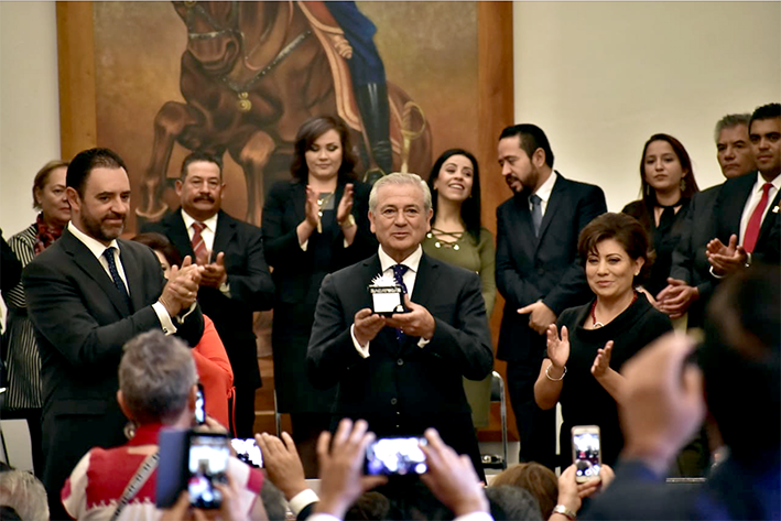 En el marco de la segunda reunión de la Asociación de Ciudades Mexicanas del Patrimonio Mundial, cuya sede es la capital zacatecana, y el 25 Aniversario de la declaratoria de Zacatecas como Patrimonio Cultural de la Humanidad, el Gobernador Tello reconoció a quien fuera su homólogo por haber sido una pieza clave en la distinción de índole mundial que hoy ostenta la ciudad.