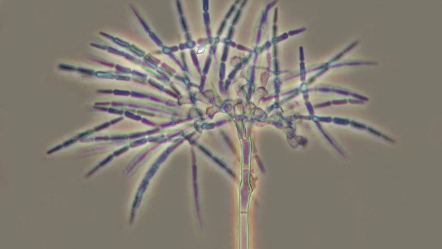 En la imagen, hongo microscópico saprobio Speirosis scopiformis visto a través del microscopio. Estos organismos son un recurso de alto potencial biotecnológico. (Foto: cortesía Dr. Gabriela Heredia Abarca.)