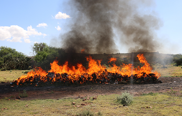 Zacatecas, Zac.- La Procuraduría General de la República (PGR) Delegación Zacatecas en coordinación con el Ejército Mexicano, incineró más de 600 kilos de narcótico, mismos que se encuentran relacionados con 34 expedientes entre ellos carpetas de Investigación y averiguaciones previas, por delitos contra la salud, en sus diferentes modalidades.