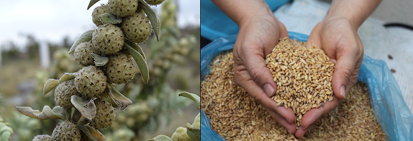El doctor Luis Ricardo Hernández y su equipo de investigadores de la UDLAP probaron aceites esenciales de cuatro plantas en el trigo y en la harina de trigo para mejorar su almacenamiento y evitar la acumulación de hongos. La salvia de bolita fue la que mostró mayor actividad protectora, tanto in vitro como en trigo cosechado.(Fotos: izquierda, tomada de www.naturalista.com / derecha, cortesía Dra. Zaida Nelly Juárez.)