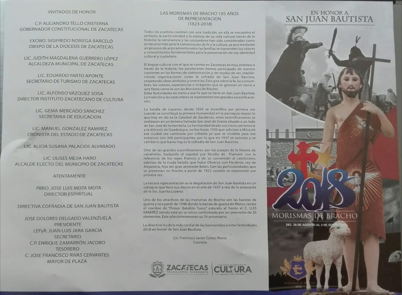 Zacatecas, Zac.- En presencia de la alcaldesa de la capital, Judit Guerrero López, fueron presentados el cartel oficial y el programa de las Morismas de Bracho 2018, que tendrán lugar del 28 de agosto al 2 de septiembre.