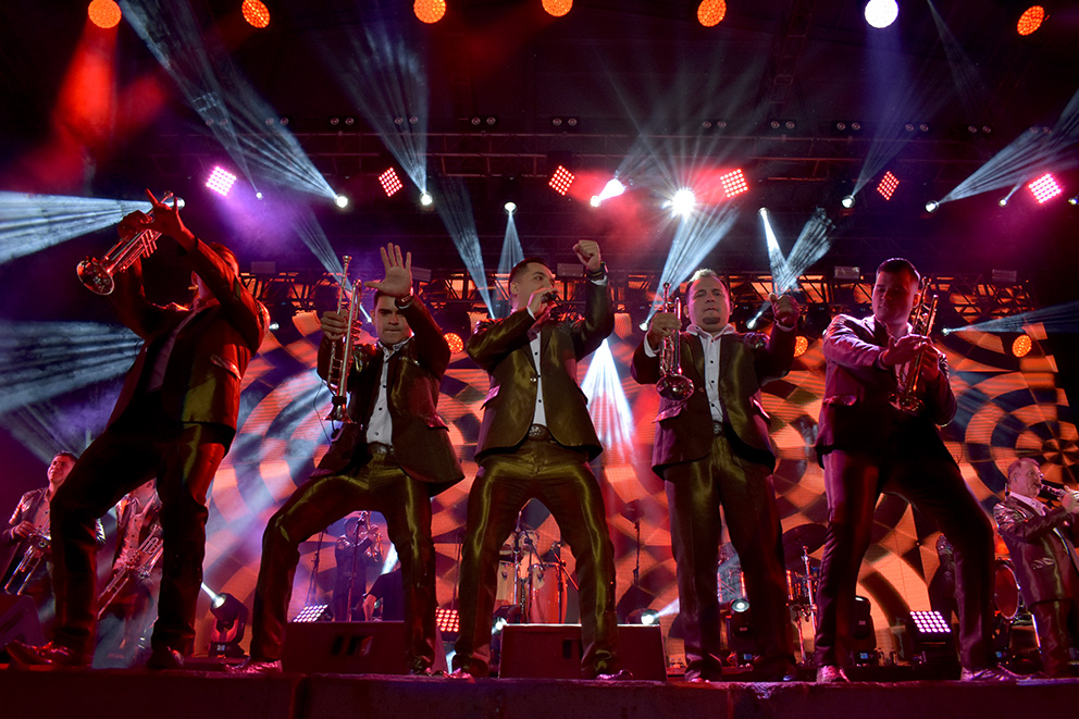 Entre los gritos del público, la agrupación sinaloense salió al escenario con la canción principal de su tour “Calidad y cantidad” para después, proseguir con las canciones “La suata” y “Los puritos huesos”.