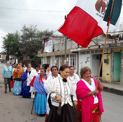 Guadalupe, Zac.- Como cada año Damas Voluntarias del Poder Judicial del Estado de Zacatecas y abuelitas del Club de la Tercera Edad, La Divina Providencia, presididas por la Señora Patricia del Carmen Álvarez Crespo, realizaron un desfile por las principales calles de la Comunidad de Martínez Domínguez del Municipio de Guadalupe con el propósito de conmemorar el 208 aniversario de la Independencia de México.