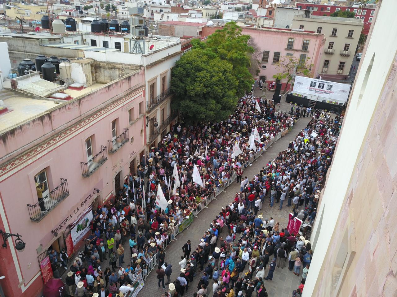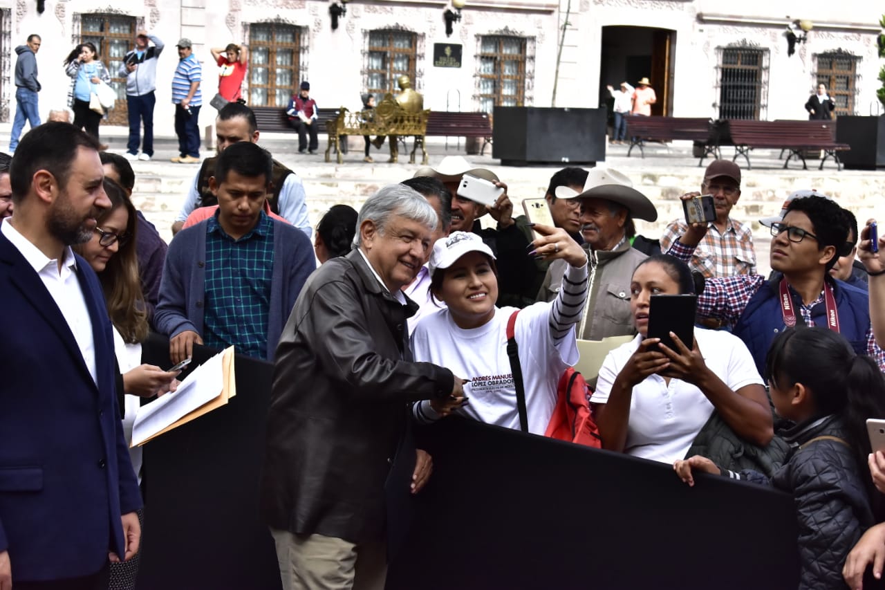 Zacatecas, Zac.- Andrés Manuel López Obrador después de desayunar una gorditas en Zacatecas inicia su gira de agradecimiento en la entidad con una reunión privada en Palacio de Gobierno donde lo recibió el gobernador Alejandro Tello; más tarde estará en la plazuela Miguel Auza donde emitirá un mensaje al pueblo de Zacatecas.