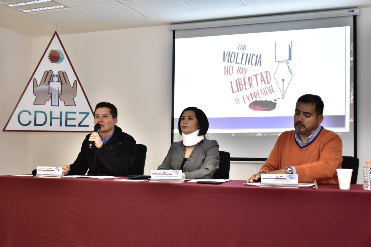 Zacatecas, Zac.- La Comisión de Derechos Humanos del Estado de Zacatecas (CDHEZ) y la Comisión Nacional de los Derechos Humanos (CNDH), presentaron en Zacatecas y Fresnillo la campaña “Con Violencia No Hay Libertad de Expresión”, ante reporteros, fotoperiodistas, comunicadores y defensores de los derechos humanos en la entidad.