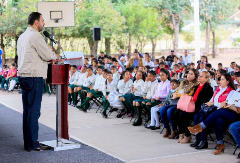 En el encuentro que tuvo con los estudiantes de esa primaria, Alejandro Tello se comprometió a construirles una cancha de pasto sintético para futbol y derribar los salones viejos para hacer una plaza cívica grande para beneficio de casi 400 niñas y niños.
