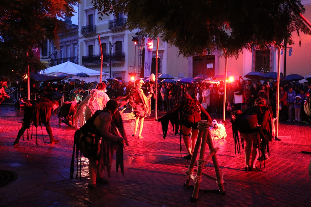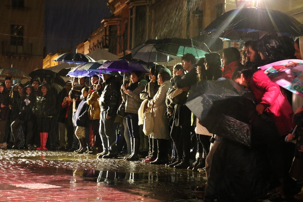 Pese a las inclemencias climáticas que prevalecieron la tarde de este lunes en Zacatecas, Laboratorio Escénico no detuvo su actuación ni el público se retiró del espacio en el que fue montada la obra AVEM, espectáculo dirigido por el zacatecano Ernesto Salinas.