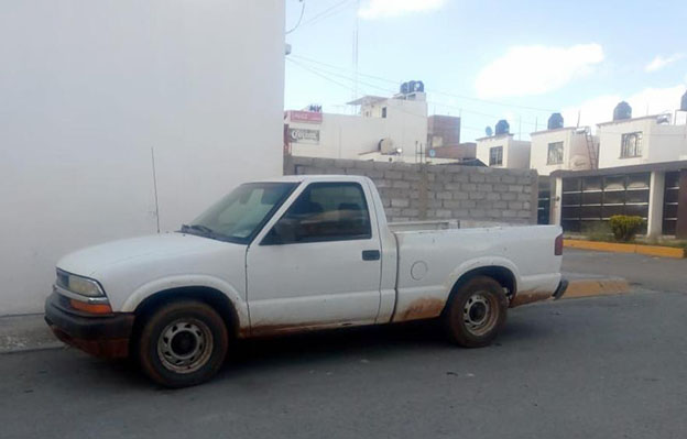 Derivado de los recorridos de vigilancia y disuasión, al encontrarse sobre la avenida principal del fraccionamiento antes referido, los uniformados metropolitanos detectaron en el cruce de la calle Dalias, cerca del Mini Súper, en aparente abandono, una camioneta Chevrolet S 10, color blanco y placas de circulación del estado de Zacatecas.