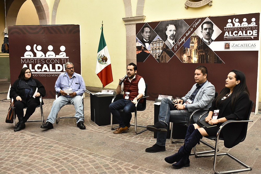 Zacatecas, Zac.- Con el objetivo de fortalecer el vínculo entre la ciudadanía y las autoridades del Ayuntamiento capitalino, Ulises Mejía Haro, presidente municipal de Zacatecas puso en marcha el programa «Martes con tu Alcalde» con el cual se pretende brindar atención de manera personal a las demandas ciudadanas a través de las audiencias públicas.