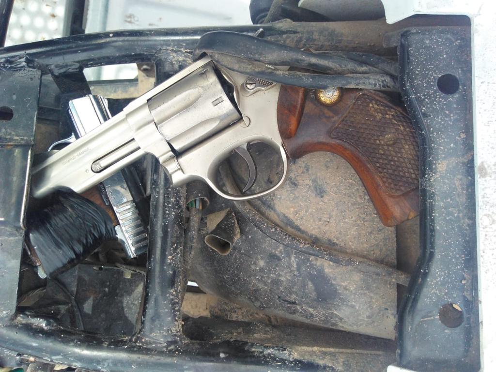 Los efectivos de la PEP revisaron la motocicleta y, debajo del asiento, encontraron dos armas de fuego cortas, un de ellas tipo revolver calibre 25 milímetros y la segunda una escuadra Magnum, calibre 357 milímetros.