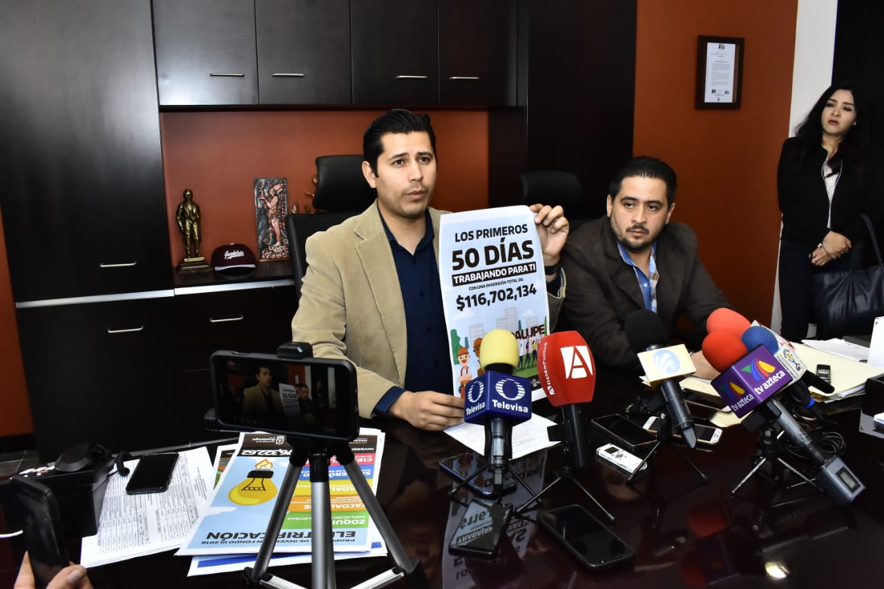 Zacatecas, Zac.- 52 obras realizadas y una inversión de 116 millones de pesos son los resultados que dio a conocer Julio César Chávez, alcalde de Guadalupe, a tan sólo 50 días de haber asumido el cargo, donde gracias a las gestiones realizadas por parte del edil, y a la suma de esfuerzos de varios actores políticos, se llevaron a cabo estas acciones que benefician a miles de habitantes del municipio de Guadalupe.