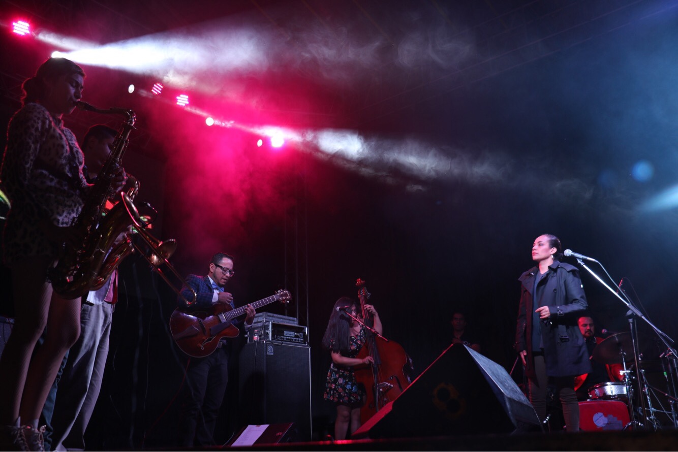 María Arellano, en la voz; Alejandro Hernández, en la batería; Cristian Merino, en banjo y guitarra; Jazmín Luna, en el saxofón; David de la Rosa, en el clarinete y Luis Meneses en el trombón, interpretaron melodías como Bourbon Street Parade y Cantina Band.