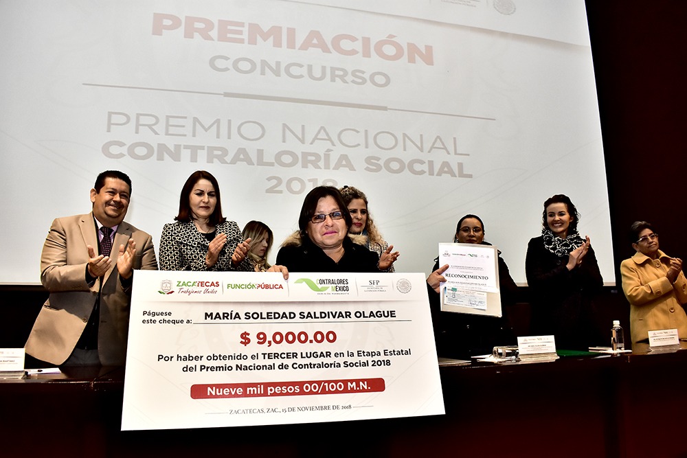 El primer lugar fue para el comité de la obra Rehabilitación de Área Recreativa de la Unidad Deportiva, de Calera; el segundo para el del Ágora González Echeverría, de Fresnillo, y el tercero para el de construcción de Drenaje Pluvial, de Zacatecas.