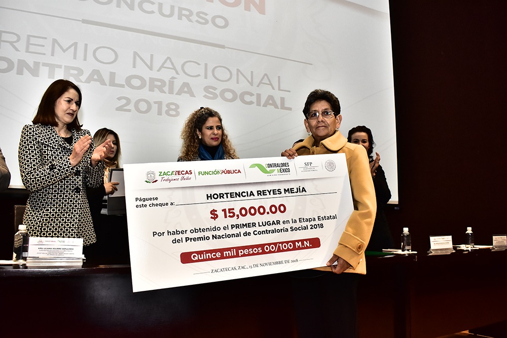 Zacatecas, Zac.- El gobierno de Alejandro Tello, a través de la titular de la Secretaría de la Función Pública (SFP), Paula Rey Ortiz Medina, entregó los premios correspondientes a las y los ganadores del Concurso Nacional de Contraloría Social etapa estatal, que reunió un total de 28 participantes.