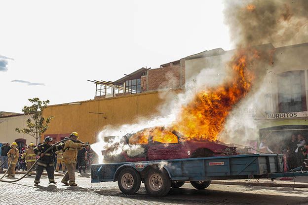 Asimismo, corporaciones Municipales de carácter social como Protección Civil de Guadalupe, en particular el Honorable Cuerpo de Bomberos, hicieron una demostración al apagar un auto encendido.