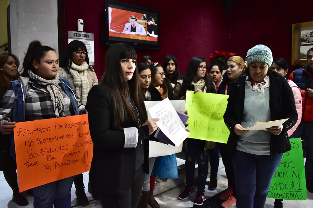 Zacatecas, Zac.-Luego de que este lunes alrededor de 415 trabajadores suplentes del Instituto de Seguridad y Servicios Sociales para los Trabajadores del Estado (ISSSTE) se manifestaran y tomaran el bulevar Adolfo López Mateos de la capital del estado, como medida de presión ante la falta de pago de las 11 últimas quincenas, y ante la falta de respuesta de las autoridades administrativas, un grupo de afectados acudió a las instalaciones del Congreso local para solicitar el apoyo de los legisladores, en particular, de Gabriela Evangelina Pinedo Morales.