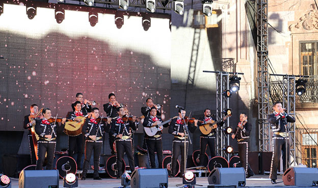MariachiZacatecas, Zac.- Acompañado de las principales bailarinas del Ballet Folklórico de México de Amalia Hernández, la tarde del miércoles se presentó en el foro de Plaza de Armas del Festival de Navidad el Mariachi Gama 1000.
