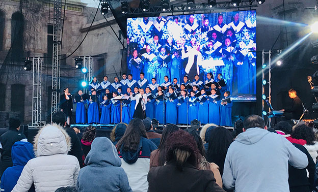 Para esta ocasión, los niños ofrecieron un repertorio que incluyó villancicos tradicionales, que fueron coreados y aplaudidos por el público que se congregó en el foro de la Plaza de Armas, de la capital de Zacatecas.