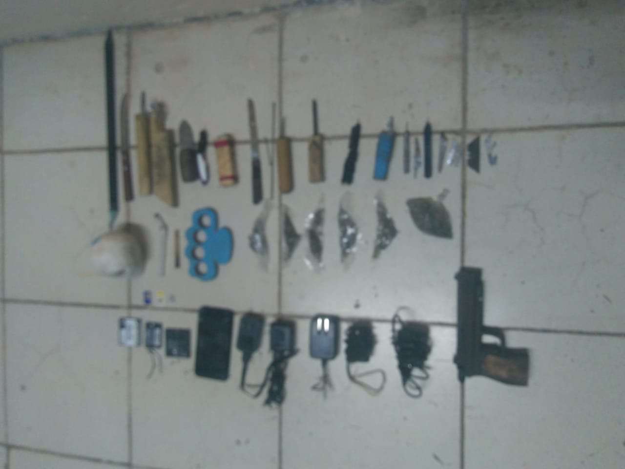 El resultado de este procedimiento consistió en: 20 puntas hechizas, tres pipas, seis dosis de marihuana, una manopla de madera, un celular, cinco cargadores para celular, trespilas para celular, tres chips y una pistola de madera.