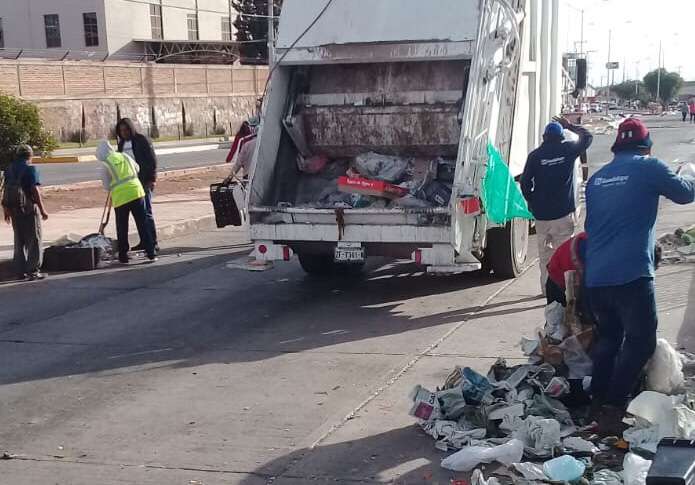 Zacatecas, Zac.-Este lunes desde las 5:30 de la mañana 20 elementos de barrido manual realizaron trabajos de limpieza en las inmediaciones del tianguis dominical que se instala en la vialidad Arroyo de la Plata, donde se recolectaron 6 toneladas de basura.
