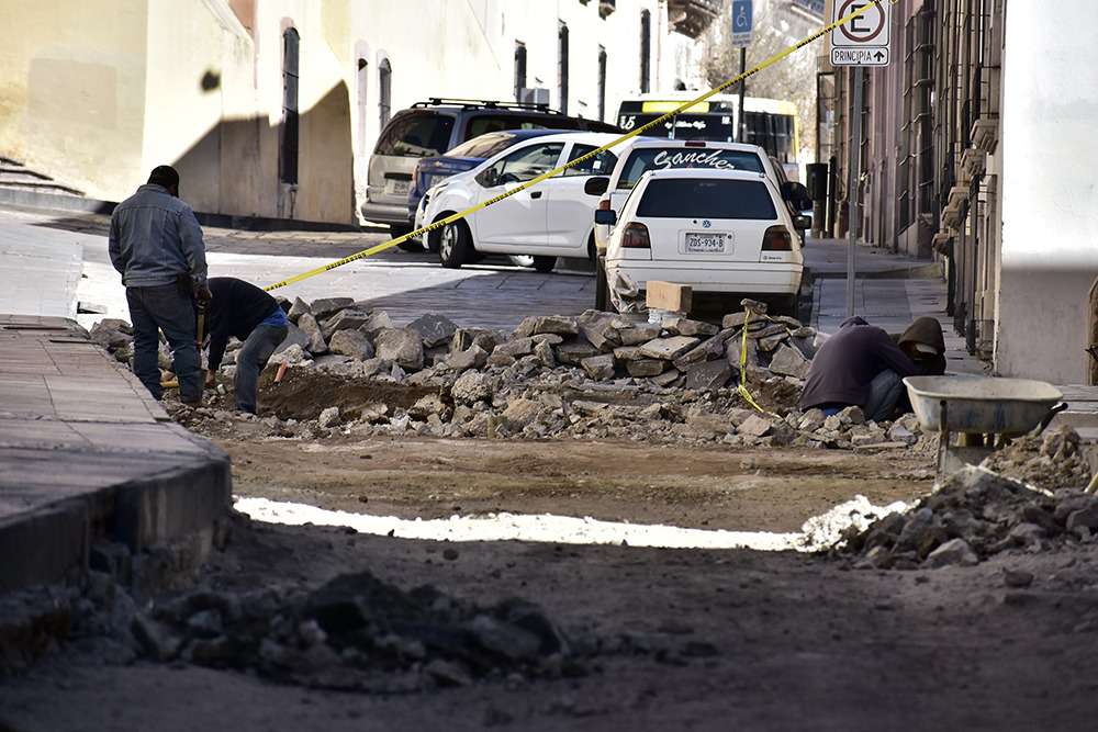 Zacatecas, Zac. Con el objetivo de contar con una mayor calidad en la infraestructura del Centro Histórico y derivado del programa de protección al patrimonio cultural edificado, el H. Ayuntamiento de Zacatecas encabezado por el presidente municipal Ulises Mejía Haro puso en marcha el proyecto de obra pública correspondiente a la intervención de calles y avenidas del primer cuadro de la ciudad.