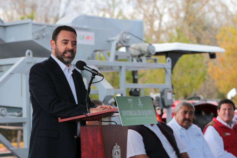 Tractores, cribadoras para granos, líneas completas para beneficio de frijol, ojo electrónico para selección de la leguminosa, maquinaria agrícola y equipo especializado para cosecha de semilla de calabaza, fueron algunos de los implementos que el mandatario entregó.