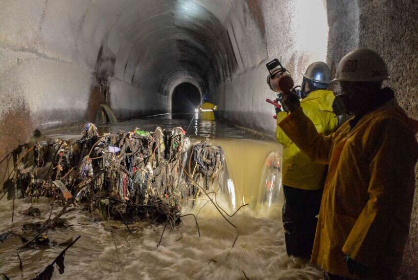 Durante el recorrido, se detectaron ductos de agua ubicados en las paredes, los cuales se encuentran en deterioro e instalados de manera incorrecta, ocasionando que el agua con residuos se filtre en la paredes, llevando una corriente al interior de la bóveda, además que algunos ductos están saturados de basura y tierra, lo que genera tapones, entre otros aspectos, por los residuos que arrojan los ciudadanos, particularmente en el área donde se instala el tianguis dominical.