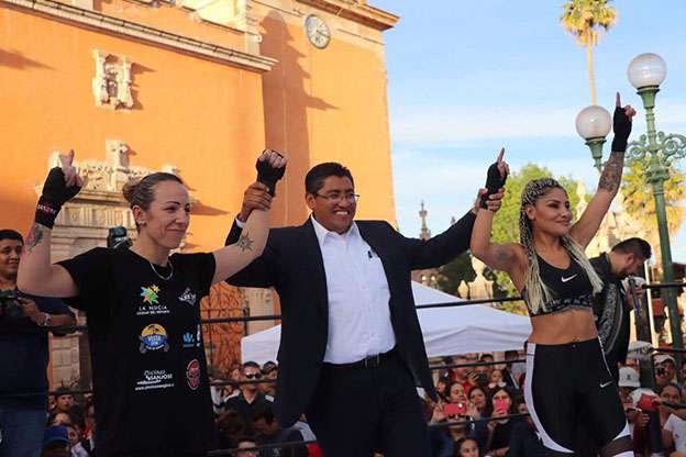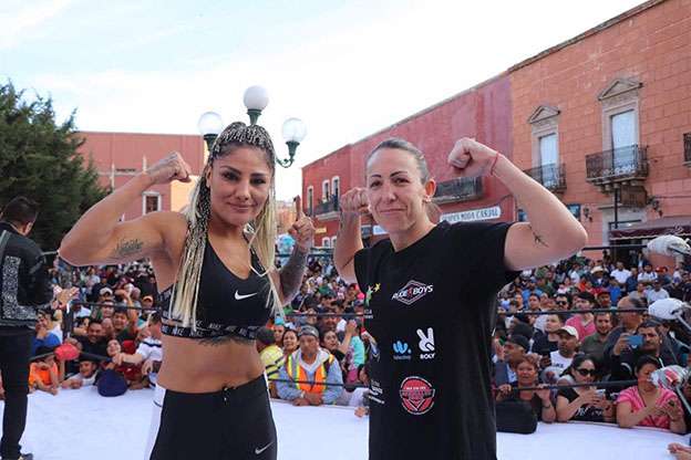 Fresnillo, Zac.- Una tarde llena de adrenalina y pasión se vivió en la Rinconada de la Purificación, con el entrenamiento público de la mexicana Mariana “La Barby” Juárez y la española Eva María Naranjo, quienes demostraron que tienen todo para presentar un espectáculo inolvidable del Campeonato Mundial WBC.