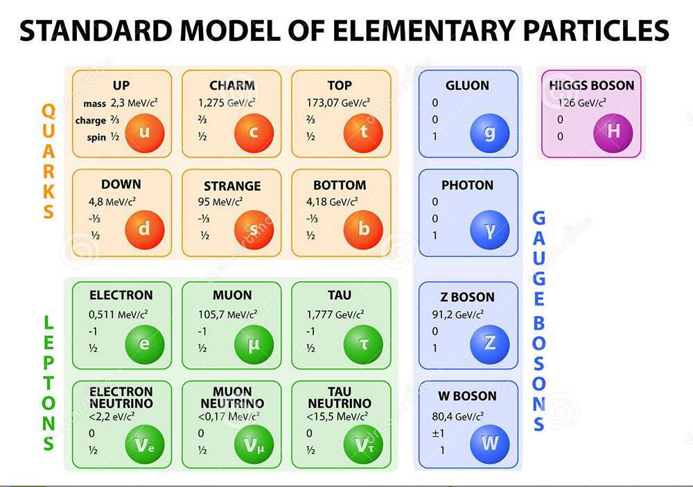 La nueva tabla de las partículas elementales de la física cuántica. (Foto: tomada de https://es.dreamstime.com.)