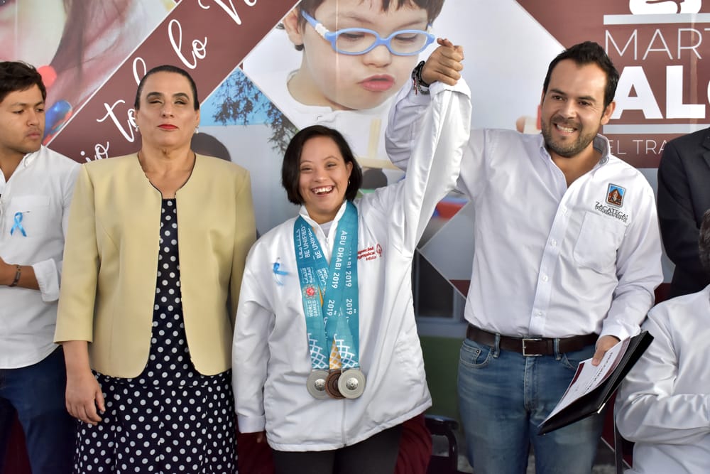 De igual manera, durante la audiencia pública, el alcalde Ulises Mejía Haro entregó un reconocimiento a la nadadora Adriana Iturriaga Mauricio, por ser un ejemplo para el deporte y haber puesto en alto el nombre de Zacatecas a nivel internacional al lograr tres medallas de plata y bronce en los Juegos Mundiales de Verano de Olimpiadas Especiales 2019, en Abu Dhabi, Emiratos Árabes Unidos