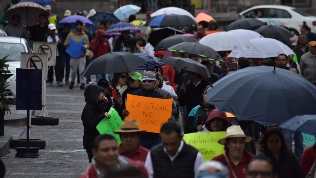 Zacatecas, Zac.- Con la finalidad de buscar entrevistarse con el gobernador del estado, Alejandro Tello Cristerna, un grupo de trabajadores y docentes de la Universidad Tecnológica de Zacatecas (UTZac) marchó por las calles de la ciudad, al tiempo que pedían una mesa de trabajo con las secretarías de Educación, Finanzas y General de Gobierno.