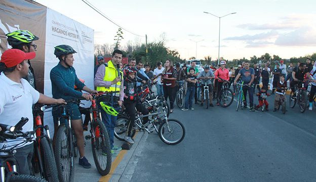 Previo a un recorrido en bicicleta, el presidente municipal exhortó a la ciudadanía en general a hacer uso de este medio de transporte ecológico como alternativa para un desplazamiento seguro, que a la vez contribuye a la economía familiar y a ejercitarse en este tramo que comienza en la comunidad de San Ramón y culmina en el crucero con la vialidad Tránsito Pesado.