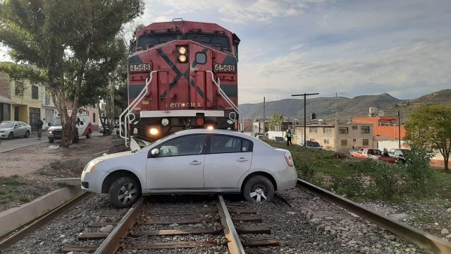 Zacatecas, Zac.- De manera milagrosa una mujer salió ilesa luego de que el tren la arrastrara a bordo de su vehículo por varios metros, la mañana de este viernes, ante la mirada incrédula de vecinos en la colonia Lomas de la Pimienta, en la capital del estado.