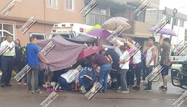 Bajo una pertinaz lluvia se registró el hecho en el que la sociedad Fresnillense se unió para cubrir a los heridos con sombrillas, ello mientras paramedicos arribavan al sitio de los hechos.