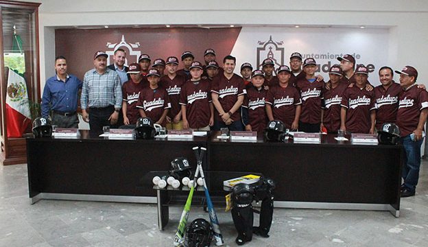 Zacatecas, Zac.- El alcalde Julio César Chávez Padilla, entregó uniformes y equipo deportivo a los integrantes del equipo de beisbol de Guadalupe que representará a México en la Serie Mundial de las Ligas Menores de Beisbol sub-15 en Chicago, Illinois del 19 al 30 de julio; en su mensaje dijo a los jóvenes que “aprovechen y disfruten al máximo esta oportunidad, ya que no solo representarán a Guadalupe, sino a todo nuestro país, les deseo el mayor de los éxitos”.