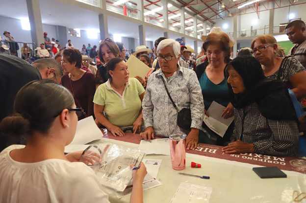 Mediante la instalación de 20 sedes de pago, atendidas por los Servidores de la Nación y el personal del Banco de Bienestar, el Gobierno de México realizó en esta jornada una dispersión de 11 millones 031 mil 300 pesos, en apoyo a la economía de los beneficiarios y sus familias.