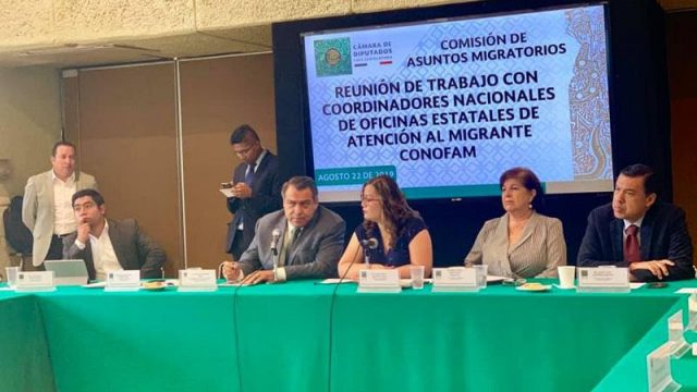 Ciudad de México.-Que los programas y recursos para atender a los mexicanos migrantes sean contemplados en el Presupuesto de Egresos de La Federación para el año 2020, solicitaron secretarios y directores de la Coordinación Nacional de Oficinas de Atención a Migrantes (CONOFAM) a la legisladores federales de la Comisión de Asuntos Migratorios de la LXIV Legislatura de la Cámara de Diputados.