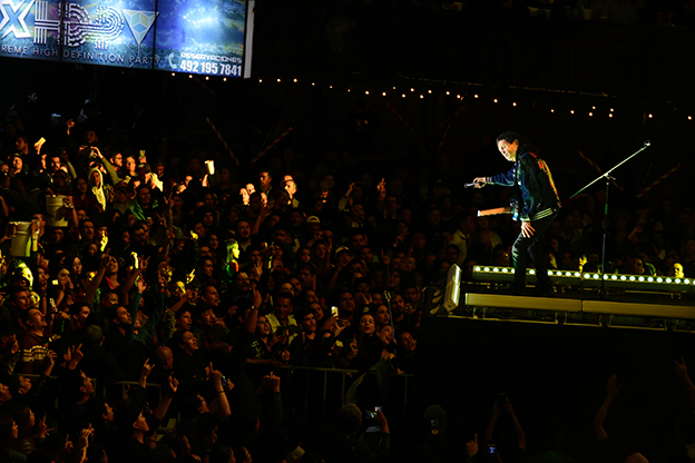 Como parte de su espectáculo se presentó un danzante tradicional mexicano con un hermoso vestuario en conjunto con un gran penacho de plumas, pues enseguida ambos entonaron el himno nacional mexicano, dejando en claro que el cantante se siente profundamente orgulloso de sus raíces, e invitando a la gente a expresarse igual.