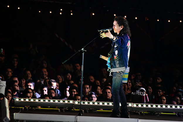 Zacatecas, Zac.- Recibidos por una multitud emocionada se presentaron en el escenario del Multiforo de la Feria Nacional de Zacatecas, Alex Lora y su banda El Tri con 50 años de trayectoria, los cuales abrieron su presentación gritando ¡Viva México y el rock and roll! Para después seguir con la canción “La raza más chida” que hizo que los asistentes de este foro saltaran al ritmo de esta canción, provocando que se creara un ambiente de éxtasis.