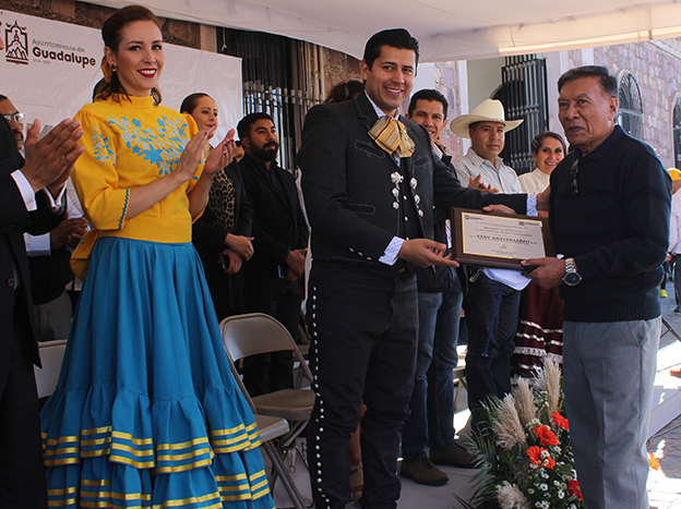 El contingente del desfile lo integraron la Secundaria Pedro Vélez, a la que el alcalde, Julio César Chávez, entregó un reconocimiento por su 25 aniversario de fundación formando a la juventud guadalupense. Lo mismo ocurrió con la Secundaria Margarita Maza de Juárez por su 35 aniversario.