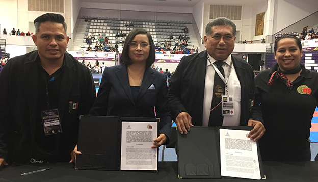 El Convenio fue suscrito por el Shihan Oscar Godínez Balvas, Presidente de la FEMEKA y la Dra. Ma. de la Luz Domínguez Campos, Presidenta de la CDHEZ, durante la competencia nacional de Karate-do llevada a cabo en la ciudad de Monterrey, Nuevo León.