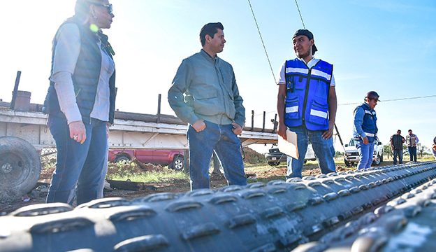 Zacatecas, Zac.- El alcalde de Guadalupe, Julio César Chávez Padilla, en compañía del director de Obras Públicas del municipio, Luis Ricardo García, realizaron un recorrido de supervisión por 3 pozos que se perforan en el municipio y que completarán el Sistema de Abastecimiento Noreste de esta localidad.