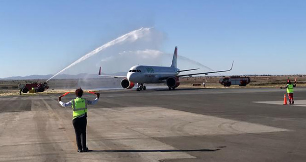 El vuelo inaugural fue recibido por Eduardo Yarto Aponte, Secretario de Turismo de Zacatecas y Yuri Salinas, Director de Relaciones Institucionales de Viva Aerobus, entre otras autoridades locales que presenciaron el tradicional bautizo de la aeronave a su llegada.