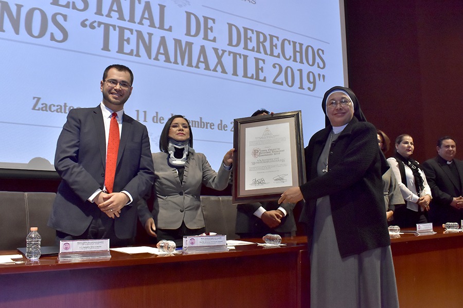 Zacatecas, Zac.- Por el trabajo a favor de la dignidad humana de las niñas, niños y adolescentes, la Comisión de Derechos Humanos del Estado de Zacatecas (CDHEZ) otorgó el Premio Estatal de Derechos Humanos “Tenamaxtle 2019”, a la Asociación Civil Villa Infantil “Sagrado Corazón de Jesús”, ubicada en Fresnillo, Zacatecas.