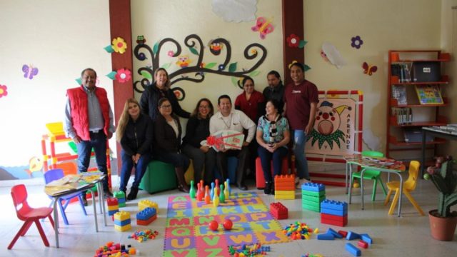 En representación de Gema Mercado Sánchez, titular de la Secretaría de Educación de Zacatecas (Seduzac), Simitrio Quezada Martínez, Coordinador Estatal de de Bibliotecas, entregó al alcalde Carlos Antonio Carrillo Gömez un conjunto de juguetes y material didáctico que ayudará a la recreación y fomento de la lectura en Jalpa.