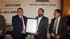 Zacatecas Zac.-El rector de la Universidad Autónoma de Zacatecas (UAZ), Antonio Guzmán Fernández, entregó los premios nacional e internacional de Poesía Ramón López Velarde en su edición 2019 a los poetas Raúl García Rodríguez y Alberto Blanco, respectivamente, como ganadores de ese reconocimiento poético desde Zacatecas. Durante su alocución, señaló que la festividad en honor…