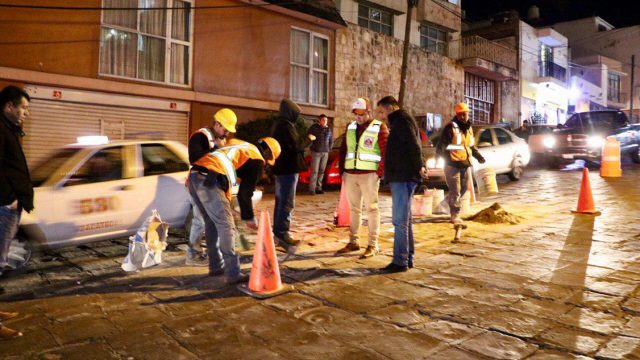 Zacatecas, Zac.-Comprometido con llevar servicios públicos de calidad a los habitantes de Zacatecas Capital, “La Joya de la Corona”, el alcalde capitalino Ulises Mejía Haro supervisó los trabajos de bacheo nocturno en la avenida Quebradilla del Centro Histórico, donde aseguró que este inicio de año se arranca con más obra pública para las más de 240 colonias y 22 comunidades de Zacatecas.