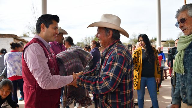 En la comunidad de Los Rancheros, donde inició el recorrido, siendo una de las más alejadas de la cabecera, el alcalde, Julio César Chávez, en compañía del delegado Martín Ramírez Torres entregó decenas de cobijas a la gente que se reunió en el domo de la comunidad.