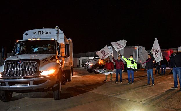A primera hora de este lunes 3 de febrero, Julio César Chávez, acompañado del Director de Servicios Públicos, Francisco Javier Soria Hernández; del Secretario de Gobierno, José Saldívar Alcalde, y de representantes de la empresa, dieron salida a los camiones modelo 2020 que cubrirán todas las rutas de recolección de residuos en el municipio de Guadalupe.