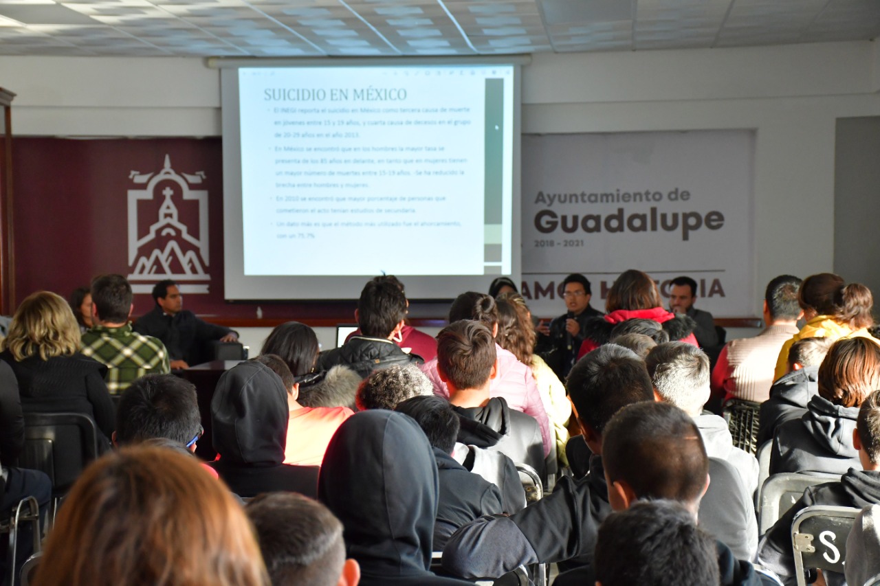 Zacatecas, Zac.-El Ayuntamiento de Guadalupe, que preside Julio César Chávez Padilla, a través del Instituto Municipal de la Juventud, que dirige Maxia Frausto, organizó un foro de prevención del suicidio denominado ‘Haz match con la vida’, que fue impartido por especialistas en el tema.